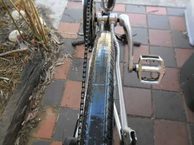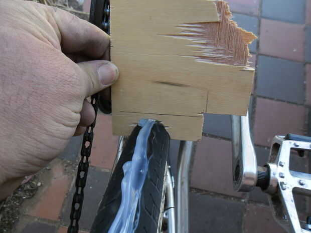 Luego construir las capas, aplicando un cordón de silicona alrededor del neumático y utilice la plantilla para el talón de la forma - girando la rueda a mano es lo suficientemente rápido.