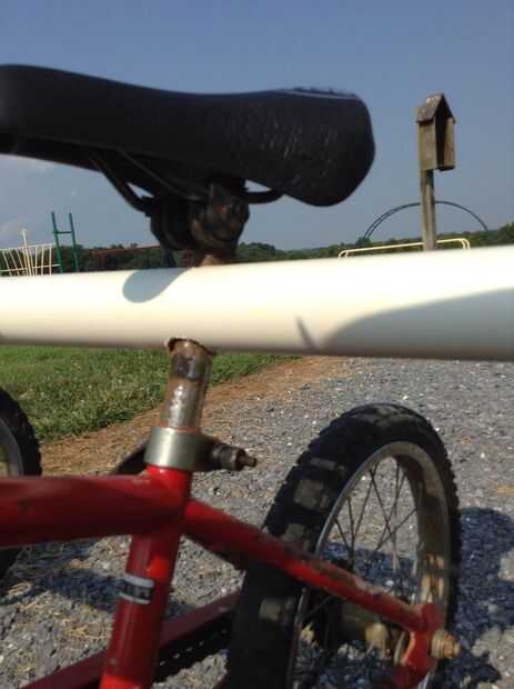 Una vez hasta el asiento, deslice la pieza de 5 pies de tubo de PVC en todo asiento, ahora seatless, bares.