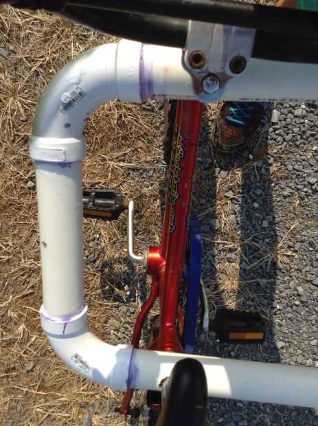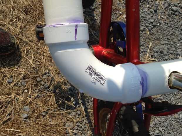 A continuación, también con cemento corte algunos su trozo del tubo de PVC para que coincida con la distancia entre el codo y el otro codo. Utiliza cemento para fijar. Repita para el otro lado.