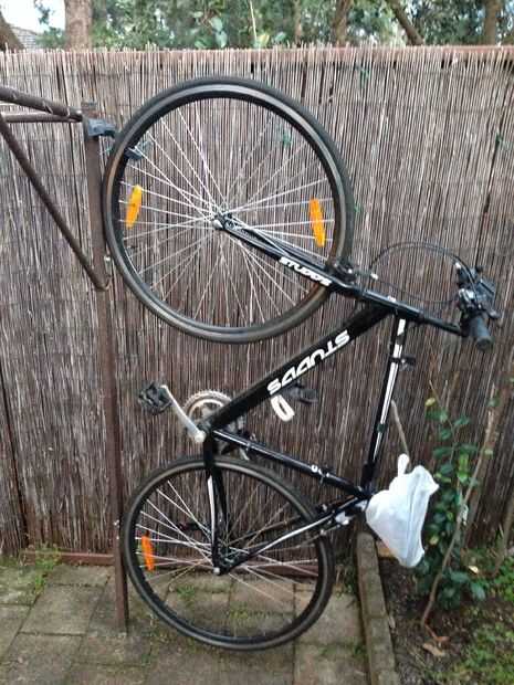 Diseñé este estante de pared simple del montaje de mi bicicleta. Que muestra en las fotos que tengo no monte en la pared, pongo sólo temporalmente en el poste de metal. Como se puede ver la pared son dos agujeros para colocar los tornillos del enchufe de la pared.
