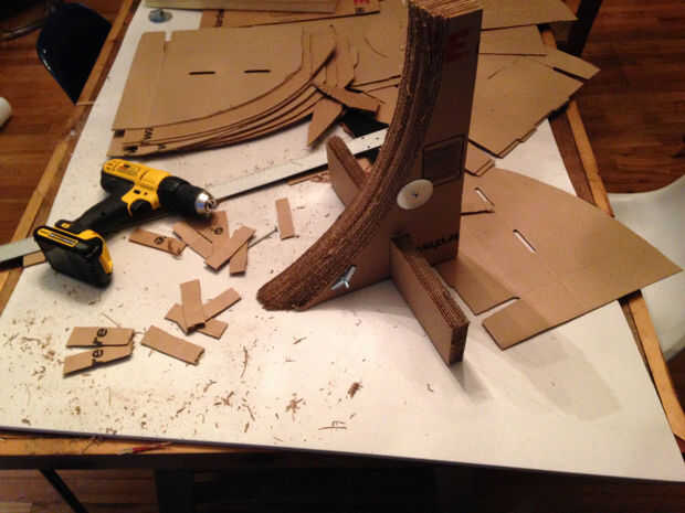 Pila 2' por 2' capas de cartón y sujetar con tornillo