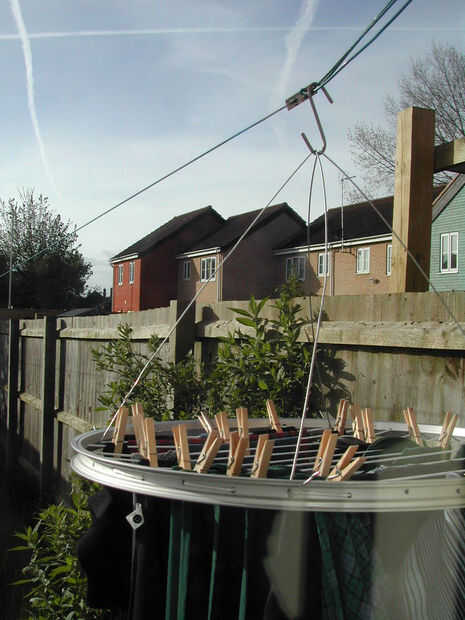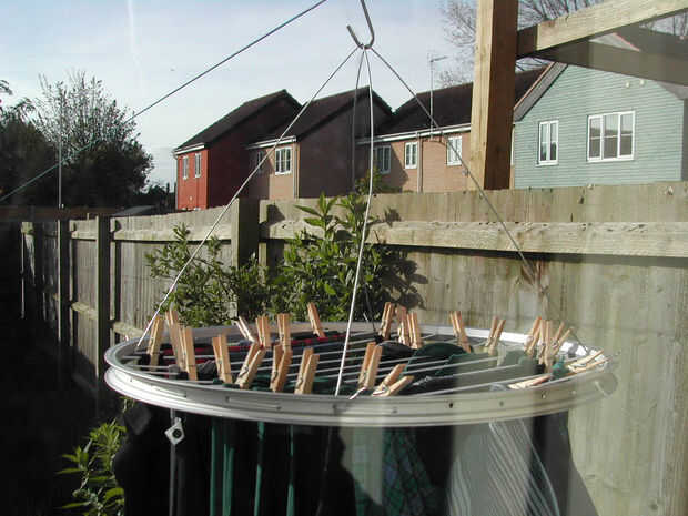 No gire en la brisa como mucho, pero el alambre rígido y el pivote superior evita el vuelco.