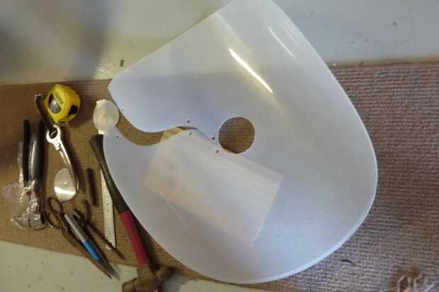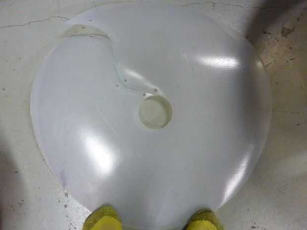 En primer lugar, hicimos 2 cáscaras plásticas que se deslizó a través de los radios de las ruedas y encajan. Dos cáscaras plásticas fueron cortadas con un cortador compás. Hice las conchas montar una rueda de 22 pulgadas, por lo que son 22" de diámetro (básicamente para cubrir los rayos de la rueda). Después de esto nos orificio personalizado para que el shell puede caber alrededor del eje de la rueda y también un corte curvo para que el shell puede ser roscado fácilmente dentro de los radios de la rueda.