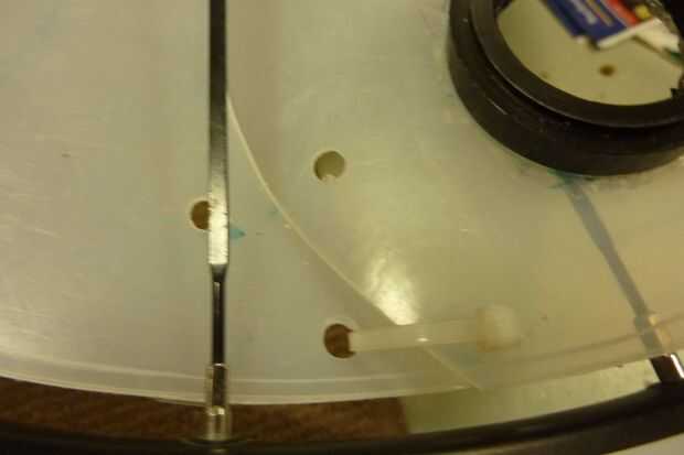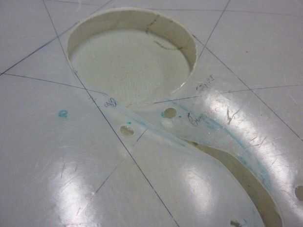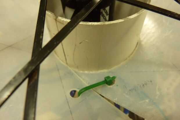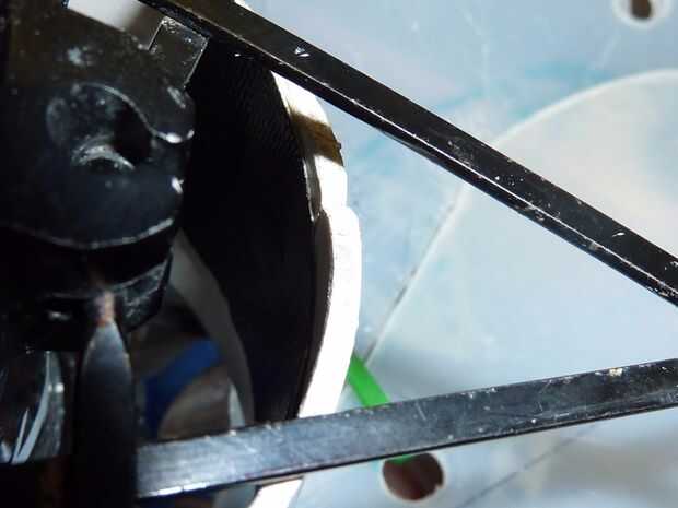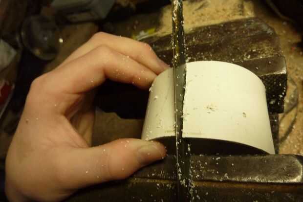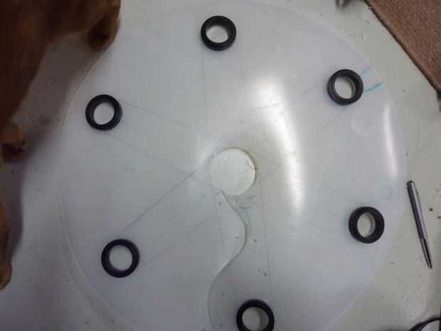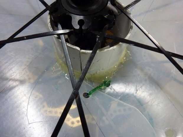 3) hizo un anillo de plástico de tubo de drenaje (45 m m, del mismo tamaño que el agujero de centro de la carcasa de plástico). Corte el anillo para ajuste alrededor del cubo y conducto había grabado el anillo en la ranura en el lugar para no contraer mientras que pegar. Luego encendió el arma de pegamento y encolar la cáscara plástica cubierta eje-Esto mantiene en lugar fuertemente.