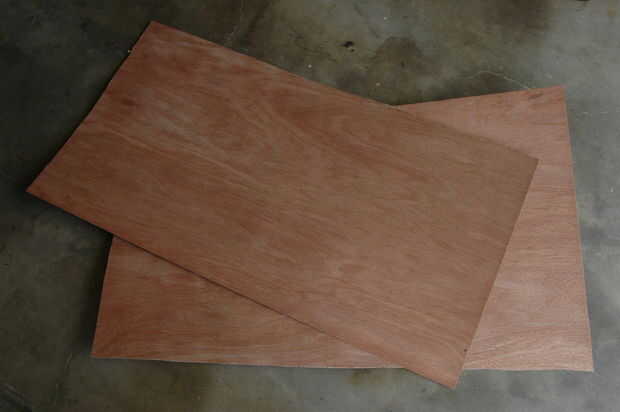 Primero se corta la madera contrachapada fina en aproximadamente 24 "x 45" rectángulos. Esto es más necesitan pero puede recortarlo después. Debe empapar la madera en agua caliente durante unos minutos por lo que puede doblar sin agrietarse.