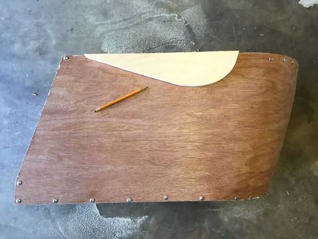 Ahora usted necesitará cortar la abertura en la pieza superior de la madera contrachapada de su sidecar con su juego.