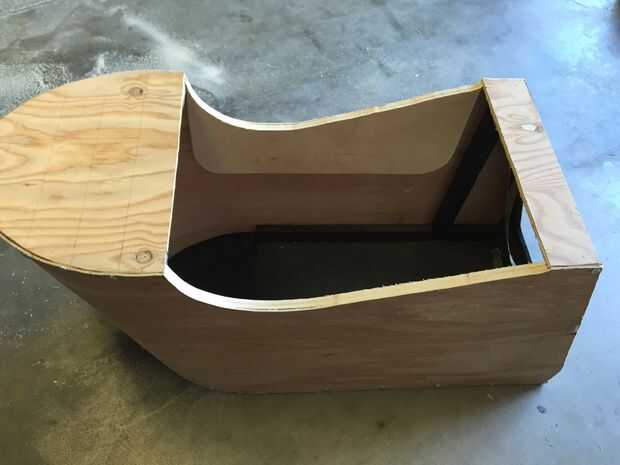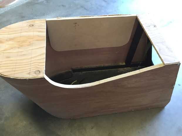 A continuación, necesitará reforzar los flancos donde están abiertos y cortarlas en la forma deseada. Con ½" madera contrachapada, corte piezas que son iguales en longitud a la abertura superior de su sidecar. Pegamento, abrazadera y que estas seco en el interior de sus paredes para agregar fuerza.