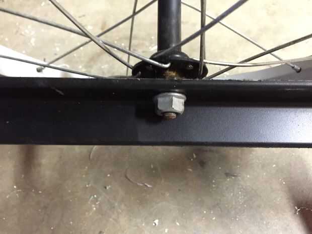 Después de probar mi sidecar, he encontrado que necesito un poco más espacio al hacer vueltas a la izquierda. Así que, como se puede ver en las fotos, solía una tuerca de acoplamiento para extender el sidecar 3" más lejos hacia fuera.