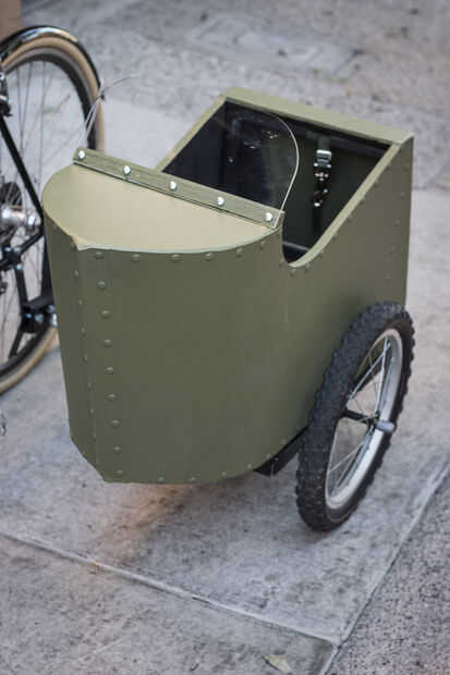Ahí lo tienen: un sidecar para bicicleta! Coge algunos doggles para su perro y sacar una vuelta! Tomó mi perro, Dewey, unos 5 minutos para sentarse en él cómodamente. Entonces lentamente comencé a empujar que él alrededor y pronto estaban apagados y montar a caballo. Ahora le encanta y se excita cada vez que lo ve!