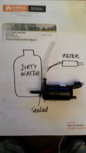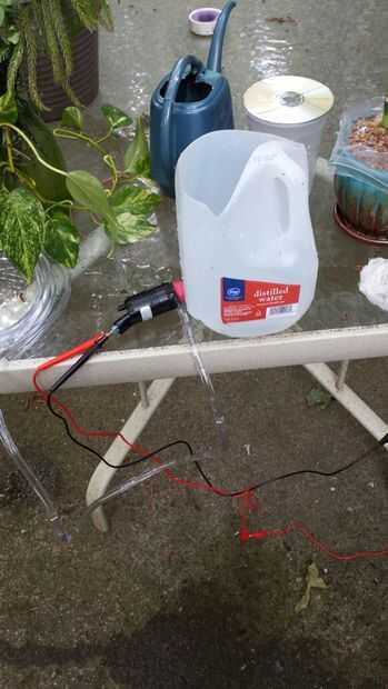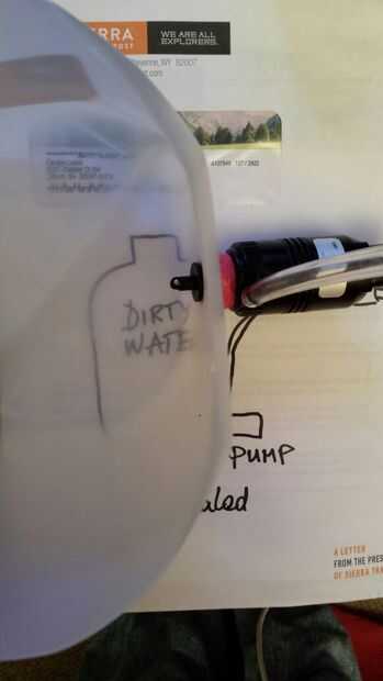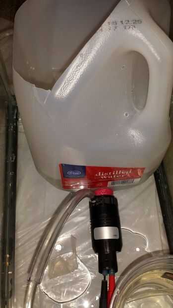 Una jarra de galón fue utilizada aquí para el envase y corte agujeros de tamaño adecuados para la bomba.