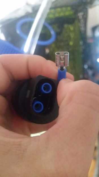 Conectores para la alimentación pueden ser colocados en la bomba como se muestra (utilizamos conectores de un conjunto de conector F2) pero asegúrese de no tocar la bomba!