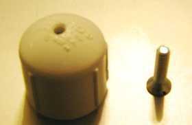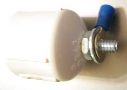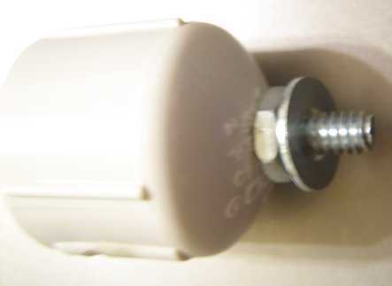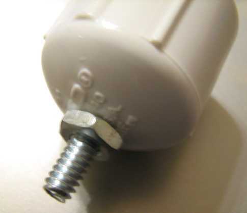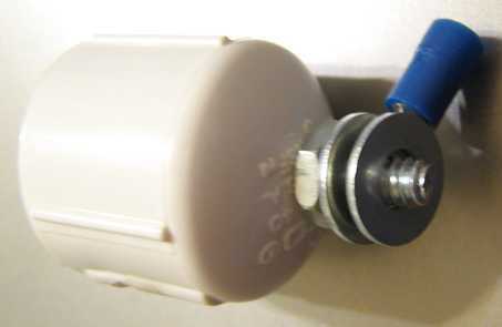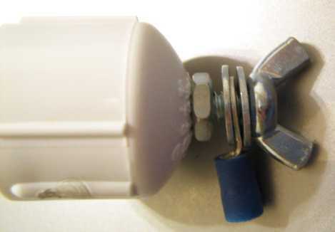 1. Introduzca el tornillo de máquina en la tapa. 2. Utilice un destornillador y llave para sujetar la tuerca hexagonal. 3. Deslice una arandela. 4. Deslice el anillo terminal alambre. 5. Deslice la otra arandela. 6. Enrosque una tuerca de mariposa.