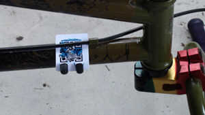 Ahora usted necesita cortar las líneas cuidadosamente y adjuntar la tarjeta de media a su tubo superior bajo el cable del freno.