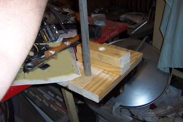 Pegan la base, pegué el sostenedor del poste, perforé el sostenedor del poste para satisfacer el poste, luego pegué el sostenedor del poste a la base.