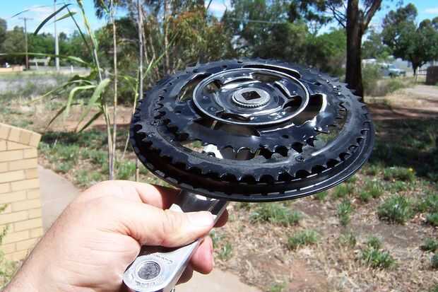 Primero en su mayoría de tierra apagado el pequeño engranaje interno - Recuerde que se trata de un engranaje de reducción profunda para una bicicleta de montaña, que no es necesario en una bicicleta de carretera, y tuve que quitarlo sobre todo, para conseguir el tercero - o el engranaje externo nuevo - más cercano a la estructura.