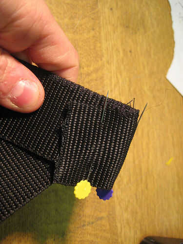 Ambos extremos de la Asamblea de las correas deben ser duplicado en a forma lazos de la correa pase a través. Estos deben hacerse escudriñar como se muestra en el diseño para permitir la toeclips para sentarse de la manera correcta.