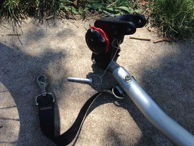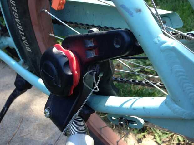 - Clip el vínculo de seguridad con algo seguro en tu bicicleta que no es el trailer (foto #7).