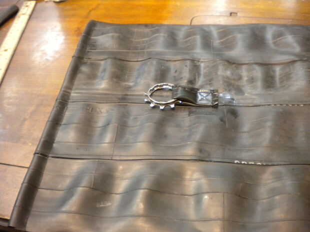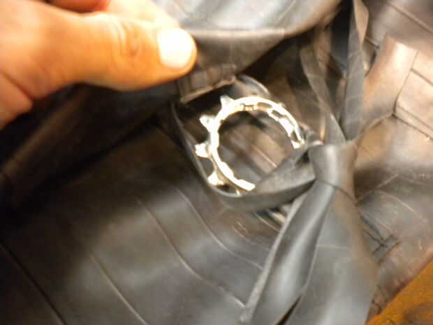 1) cortar una tira de 3-4' x 1/2" de tubo de bicicleta.