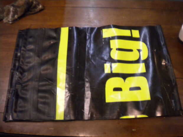 1) lay vinilo bocarriba en el centro de la hoja de tubo de bicicleta cara abajo. Esto debe significar que quede en los lados largos con sobre una media pulgada de tubo de bicicleta colgado de cualquiera de los lados más cortos de la longitud.