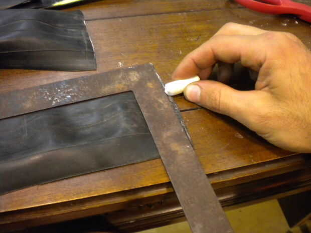 5) doblar tubo exceso sobre vinilo. Tack. Lubricante. Coser.