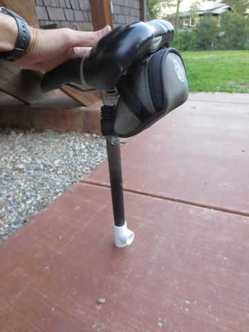 Lamentablemente, el diámetro interno del tubo de PVC es demasiado pequeño para que deslice sobre el asiento estándar poste de diámetro (1 1/8"/ 28,6 mm) sin importar cuánto libra en él.