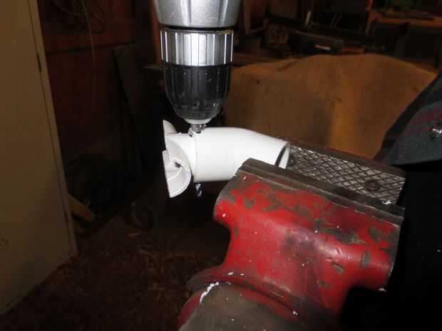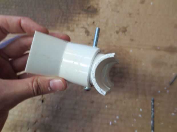 Me perforaron a través de la pipa de la pipa de T y el codo luego había añadido un tornillo pasante con una tuerca en un extremo.