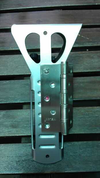 Dependiendo de su opción de rack y bisagra, tratar de perforar para caber al menos 2 tornillos y tuercas en bastidor y bisagras.