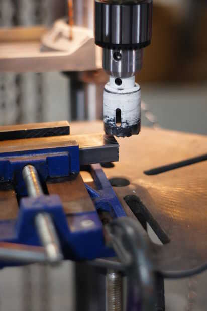 Realmente no hacemos dibujos mecánicos antes de la construcción, por lo que para nosotros es mucho sosteniendo en su lugar y marca con sharpies. Después se marca el material usamos un serrucho para hacer frente a la tubería para un ajuste limpio agradable. Cuando utilizando el orificio de sierras Asegúrese de que sus materiales se fija firmemente. El serrucho es agresivo y puede agarrar el material enviar un bucle for. Una lijadora de mano redondo archivo o tambor es una gran herramienta para finalizar cualquier copes que no se ajustar a cómo le gustaría. Recuerde que es mucho más fácil para llevar más material y luego agregar.