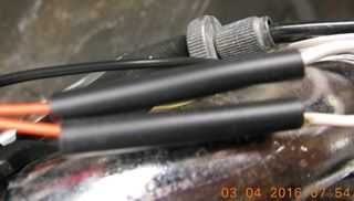 Trenzados entre sí los cables y soldar la conexión en su lugar. Luego cubrí la conexión con el abrigo del encogimiento. Sólo recuerde el encogimiento abrigo sobre uno de los cables antes de realizar la conexión del hilo de rosca. Puede utilizar cinta aislante en vez de abrigo del encogimiento. Nunca había usado envoltorio antes así que quería probar. Es muy eficaz y divertido reloj retráctil para arriba!