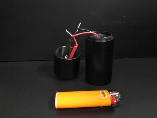 Use el encendedor para reducir la cinta a los cables. Puesto que los tubos de la lente están diseñados para hilo en sí, sólo conecté las dos piezas juntas.