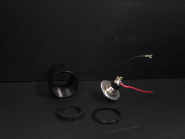 La Asamblea del extremo de alimentación para el LED es hacia adelante. Utilice uno de los anillos gruesos para apretar al conector del tubo de la lente.