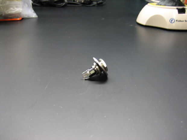 El gato tiene dos componentes a él: una arandela y una junta tórica. La lavadora va en la toma y la junta tórica y no al revés. La junta tórica es lo que presiona contra la arandela de McMaster-Carr, el uno con el ID 3/8". Coloqué esta lavadora del receptáculo y asegúrelo con la tuerca. Si haces esto, tenga cuidado de no apretar demasiado fuerte. Si no, se romperá la toma. Si no aprieta lo suficiente, después el gato hará girar libremente en la lavadora. Ambos escenarios lamentablemente han ocurrido a mí.