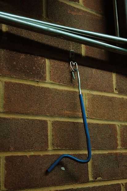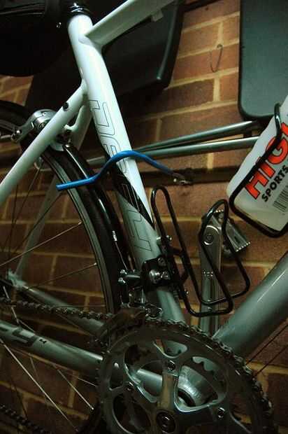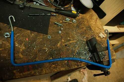 volver a la bicicleta en el rack y medir la longitud de la barra (añadir un poco de espacio libre 1-2 cm). Doblar la varilla a la forma en la fotografía o gancho solo si vas a tener suficiente espacio libre.