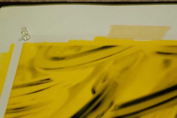 Para registrar el negativo en el papel, la cinta la negativa en la parte superior central con cinta de enmascarar. Una franja de 2 a 3 pulgadas debe hacerlo.