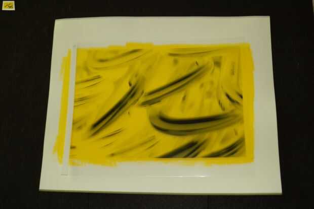 Registrar la azul negativa con el papel cubierto de pigmento amarillo.