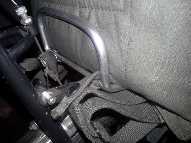 Raíles de sillín 5.I gancho bolso a través y alrededor de bastidor trasero con tiras.