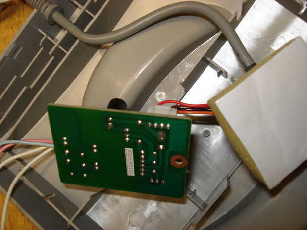 Después de que el PCB y los componentes, demostrando que a pesar del grueso cable con varios cables, sólo tiene dos conexiones, una para encendido (rojo) y uno para tierra (todo el resto de los cables). Fácilmente podría cortar el conector principal y usar el cable corto de izquierda para ejecutar a la batería, si está también en el manillar o en la parte delantera del bastidor. De lo contrario, usted necesitará quitar el cable externo enteramente y empalmar su propio cable de alimentación, que es lo que tenía que hacer en mi unidad existente.