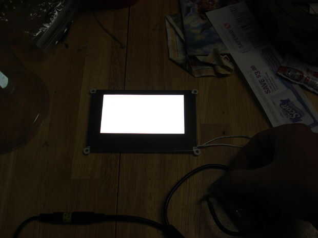 Las siguiente fotos pocos muestran cómo delgado es la una unidad pequeña, y como se ve con la luz encendido y apagado. Dado que es la unidad de 250mA, es bastante brillante. La iluminación de la cocina tomé estas imágenes es 160W (tubos de 4 pies de 4 x 40W, sin difusor), directamente bajo la luz, de 4,5 pies sobre la mesa. La imagen que muestra que enciende con la luz en el centro de la cámara fue lo suficientemente brillante para forzar la cámara a iris abajo y atenuar el fondo para no overlight del centro donde está la iluminación CCFL. Para mostrar mejor como se ve al lado el siguiente dos fotos muestran lo y luego en con la cámara centrada fuera de la zona la luz causaría al diafragma hacia abajo. No es demasiado brillante, en comparación con otros adaptadores de escáner que he usado, pero está bien para su tamaño.