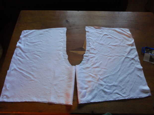 Separar las dos piezas del patrón, y prender las costuras laterales de cada pieza, derecho contra derecho, con las muescas para alinear las piezas.