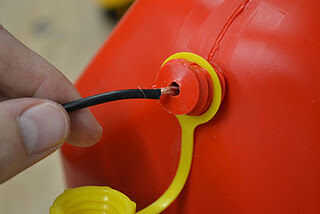 Utilice los agujeros de aire encima de la lata para pasar el coper los cables a través de la lata.