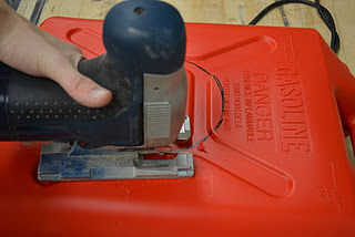 Usar una sierra de calar para cortar un agujero en la lata. Siga el círculo trazado en el paso 3. Asegúrese de que el orificio es más pequeño que el diámetro del altavoz general.