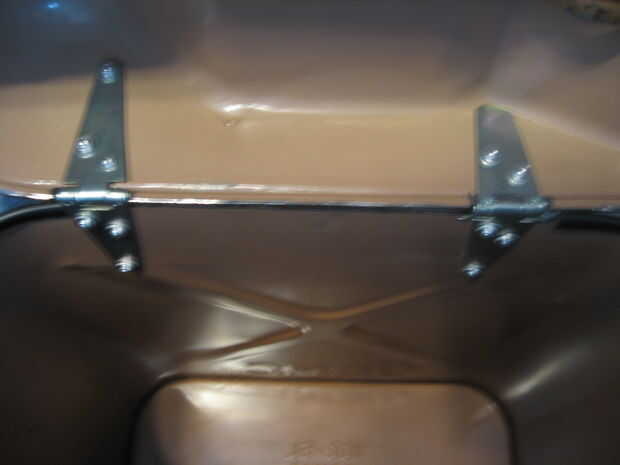aquí es una sencilla y barata manera de colgar basura cocina puede en la puerta del armario bajo lavabo:1. había doblado de dos soportes en L pequeña de cinta para cañerías metálicas y había atornillado a la puerta del gabinete.2. Marque las posicion