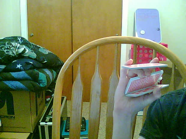 este es un simple corte XCM (extrema manipulación de la tarjeta). Esto requerirá 1 baraja de cartas, 2 manos, 1 cerebro y 10 dedos. Si no tienes estos, usted puede conseguir en su hospital local. (excepto las cartas)Paso 1: Cómo llevar a cabo Sosteng