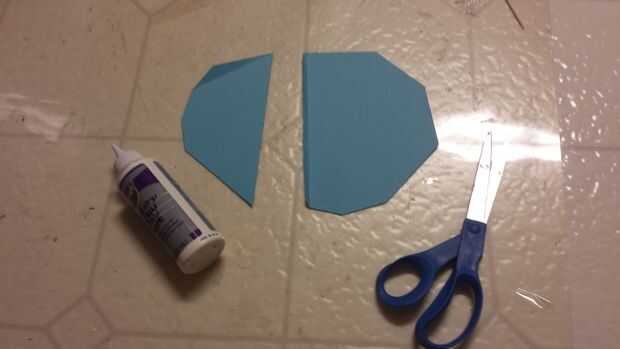 Ahora, tenemos que pegar en la parte posterior de la cabeza. Tampoco puede poner las aletas en el exterior, o en el interior. Me parece que mantener las aletas en el interior es más fácil y hace la parte de atrás se vea mejor (a pesar de no verlo). Buena cantidad de pegamento se aplican e incluso añadir unas tiras de cinta de embalaje al interior antes de colocar la parte posterior hacia abajo. Pegue cada aleta uno a la vez, hasta llegar a los dos últimos. Puede pegar los dos al mismo tiempo.