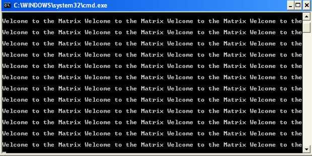 Después de prompt, poner un espacio y comienza a teclear el Bienvenido a la matriz. Para asegurarse de que el dice el dicho no es superposición a la línea siguiente, debes escribir:
