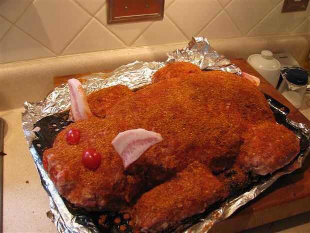 Después de que el cerdo ha reposado en la nevera sacarlo y agregar las características que tan encantador a mano.