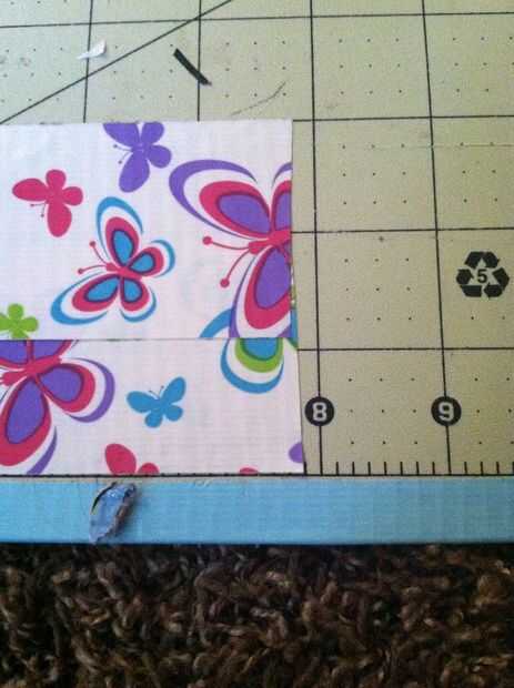 Cosas que necesitará: al menos 2 rollos de distinto color del conducto cinta y un cuchillo del exacto y tabla de cortar. (o tijeras)Paso 1: Corte 8inch dos pedazos de cinta adhesiva para conductos,Paso 2: Girar ellos lado pegajoso hacia arriba.Paso 3