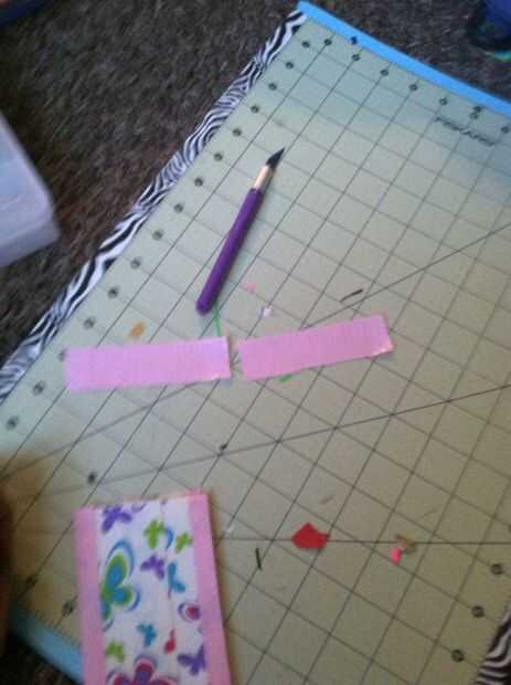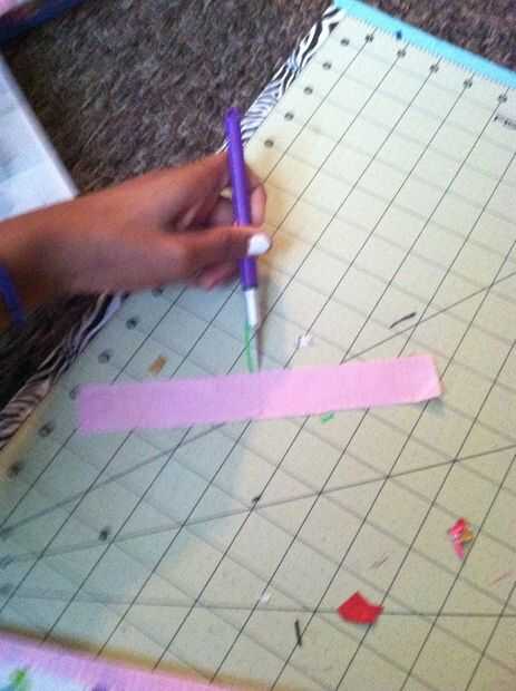 Tomar tot otro color y cortar dos tiras de 7 y 3/4 de pulgada y de rasgar o cortar por la mitad verticalmente. Entonces una de esas tiras cortar por la mitad horizontalmente