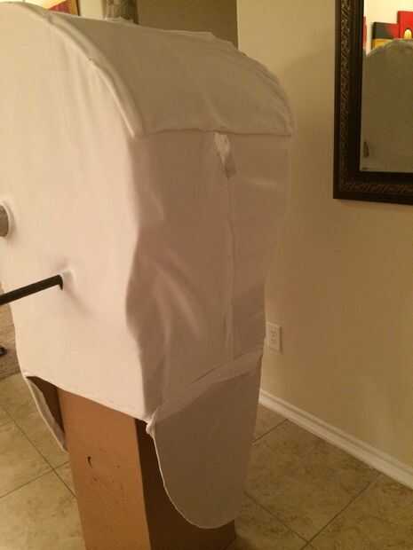 Cubierto con tejido elástico, alfileres y pegamento caliente