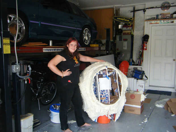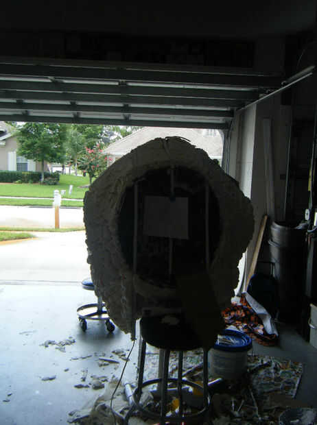 Después de esto (y la espuma dado el tiempo de secado más por lo que conservaría su forma) la forma entera fue cubierta en tejido elástico utilizo una sábana vieja de jersey para eso. Este alisado hacia fuera mucho el lumpiness de la espuma